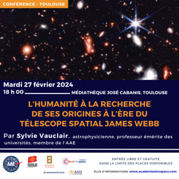 « L'humanité à la recherche de ses origines à l'ère du télescope spatial James Webb », présentée par Sylvie Vauclair, astrophysicienne, professeur émérite des universités, membre de l'AAE