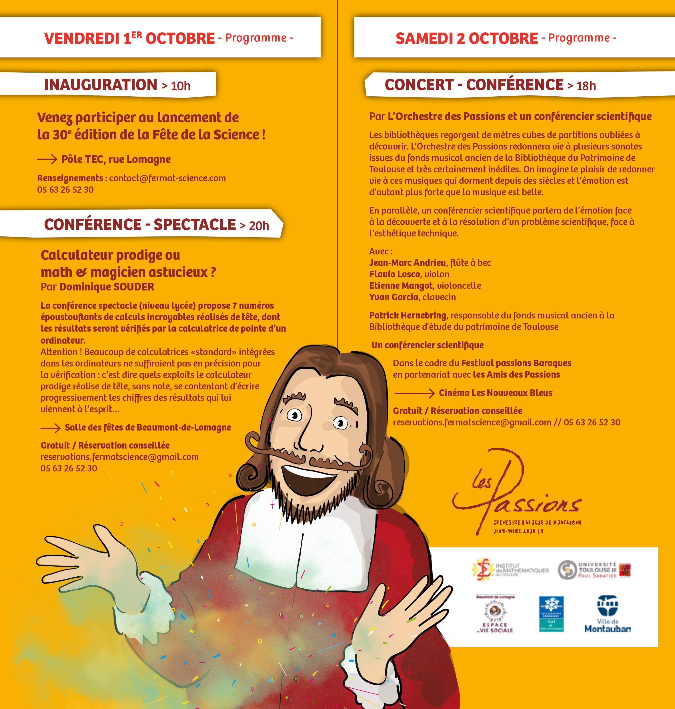 Ce week end s'organise dans le cadre de la Fête de la Science autour de conférences mathématiques, d'ateliers mathématiques et scientifiques, d'expositions, d'animations spectacles... pour petits et grands. Retrouvez tout le programme de la Fête de la Science dans le Tarn et Garonne.