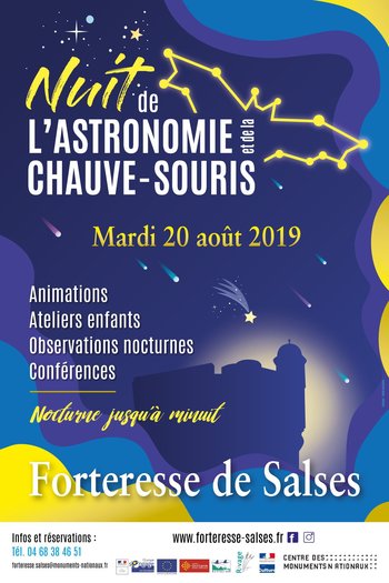 Située à 10' de Perpignan, à 1h de Montpellier et à 1h30 de Toulouse, la forteresse de Salses a été construite à la fin du XVe siècle par la couronne d'Espagne pour garder l'ancienne frontière avec la France. Dans un environnement exceptionnel, entre l'étang de Salses-Leucate et les Corbières, elle est classée Monument historique depuis 1886 et classée Natura 2000 depuis 2008. Elle est gérée par Le Centre des monuments nationaux, établissement public du Ministère de la Culture. Cette troisième édition de la Nuit de l'astronomie et de la chauve-souris est gérée en partenariat avec le syndicat RIVAGE.