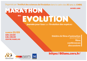 Dans le cadre des 80 ans du CNRS célébrés cette année, l’ISEM propose une manifestation de vulgarisation scientifique qui met à l’honneur les mécanismes de l’évolution à travers du théâtre, des films, des conférences…