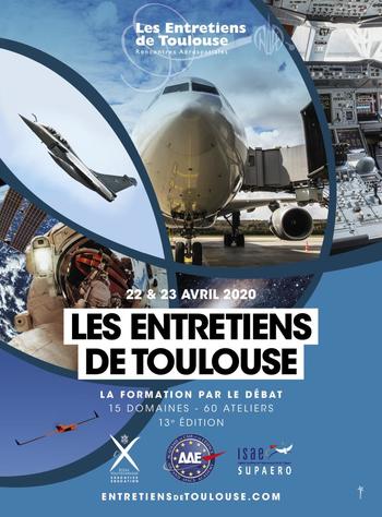 2020 marque la 13ème édition des Entretiens de Toulouse, la formation scientifique "par le débat" pour les acteurs des secteurs aéronautique et spatial organisée par l’Académie de l’Air et de l’Espace et l’Ecole Polytechnique Executive Education. Les Entretiens de Toulouse 2020 se tiendront les Mercredi 22 et Jeudi 23 avril sur le campus de l’ISAE-Supaero à Toulouse.