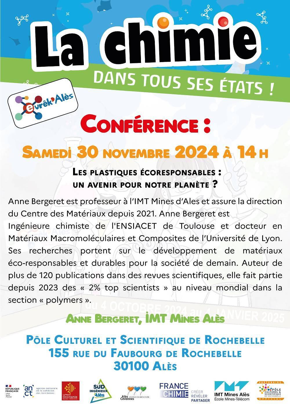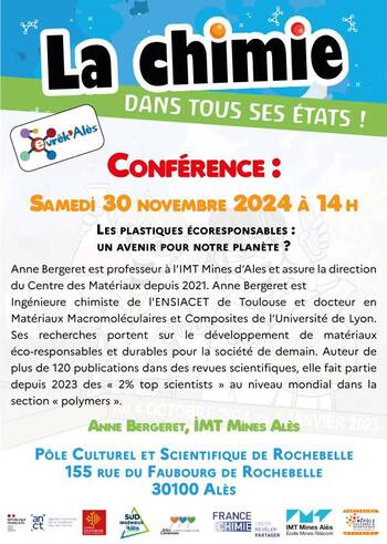 Dans le cadre de l'exposition La chimie dans tous ses états !, l'association Eurêk'Alès vous propose un cycle de conférences dont la dernière aura lieu le 30 novembre à 14h.