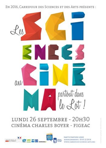 Le concept des soirées "sciences au cinéma" est le suivant : retrouvez de mai à décembre 2016 la dynamique et symathique équipe de l'association Carrefour des Sciences et de Arts dans 9 cinémas lotois (calendrier complet des des soirées ici) et assistez, le temps d'un film, à de nombreuses projections cinématographiques scientifiques, ludiques, hétéroclites, étonnantes et captivantes.