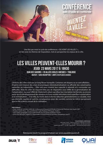 À l'occasion de l'exposition « Inventez la ville… dont vous êtes les héros ! », l’aua/T (agence d’urbanisme et d’aménagement Toulouse aire métropolitaine) le CODEV (Conseil de Développement Toulouse Métropole) et l’IdV (Institut de la Ville) organisent conjointement un cycle de conférences-débats.