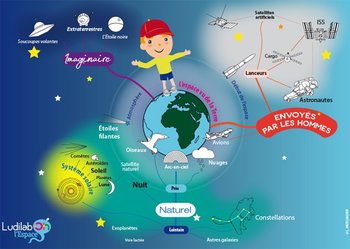 Pour cet atelier, Ludilb'Oh l'Espace vous propose vous propose la création d'une carte mentale (1/atelier) grand format, autour de la notion d'espace. Le spatial, bien sûr ! Mais aussi l'espace du rêve, l'espace de travail, l'espace naturel, l'espace de vie, etc. Après un court brainstorming vous la réaliserez à base de découpages et collages, dessins, lettrages, pochoirs... À la fin du festival un diaporama sera réalisé pour une publication sur les réseaux.