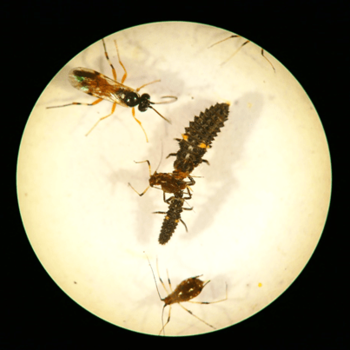 Avec Mélodie Ollivier, nous réaliserons un atelier qui nous permettra de donner un aperçu de la complexité des interactions pouvant s'établir au sein des agro-écosystèmes. Vous découvrirez le rôle des infrastructures agroécologiques (haies, bandes enherbées...) dans la régulation naturelle des communautés d'arthropodes et comprendrez comment rétablir les équilibres entre plantes et insectes. Vous apprendrez aussi à distinguer et reconnaître les "bons" des "mauvais" insectes, à différents stades de développement (larve, adulte...).