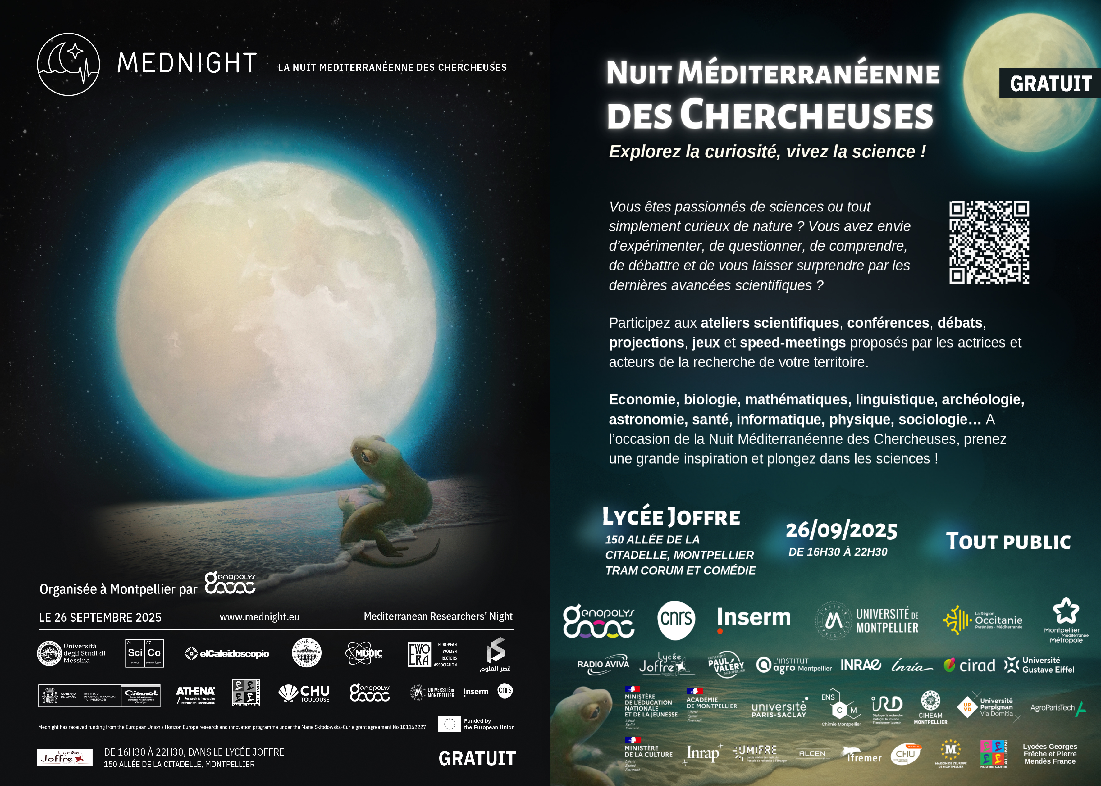 Genopolys organise à Montpellier, le vendredi 26 septembre 2025, la Nuit Méditerranéenne des Chercheuses : un événement festif, scientifique et citoyen qui invite petits et grands à rencontrer celles et ceux qui font la recherche aujourd’hui. De 16h30 à 22h30, au cœur du lycée Joffre, près de 200 personnels des laboratoires de recherche territoriaux et internationaux – partageront leur passion, leurs découvertes et les coulisses de leurs métiers.