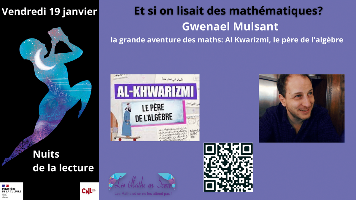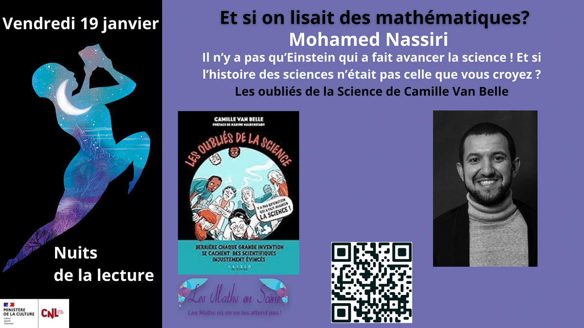 Vendredi 19 janvier de 18h30 à 20h30 nous vous proposons la 3e édition de l'événement Et si on lisait les mathématiques organisé par l'association Les Maths En Scène, idée proposée par Houria Lafrance, dans le cadre des Nuits de la lecture.