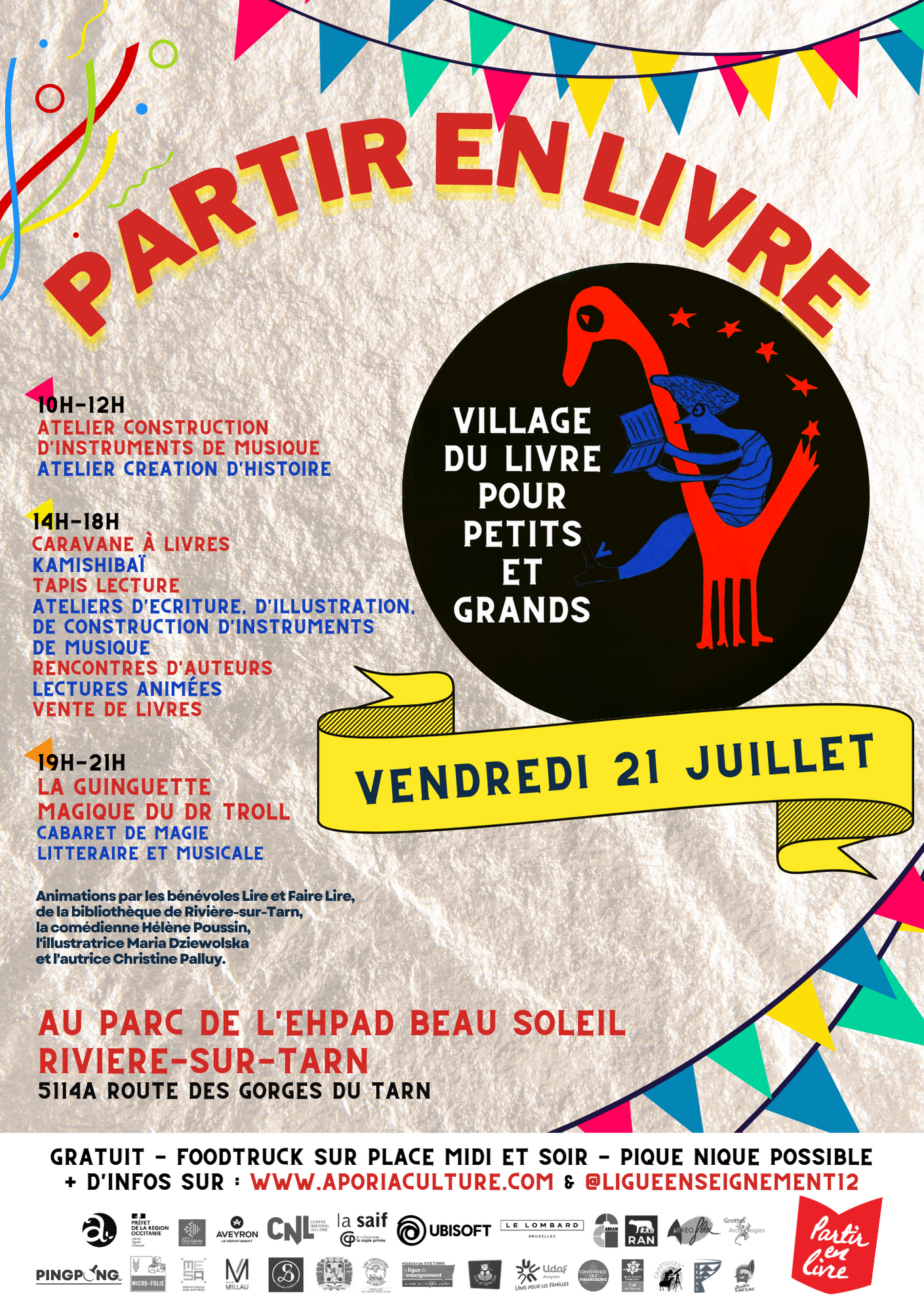 Pour la première fois cette année, nous assemblons plusieurs énergies pour proposer une journée festive "Partir en livre" le vendredi 21 juillet à Rivière-sur-Tarn.