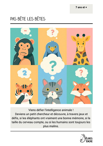 L'atelier invite les enfants de 7 à 12 ans à se confronter à l'intelligence des animaux.
