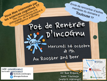 Le pot de rentrée aura lieu au Rooster and Beer (100 Rue Riquet, 31000 Toulouse, métro Marengo SNCF), à partir de 19h !