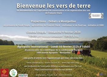 Venez nombreux à la projection-débat « Bienvenue les vers de terre » organisée le lundi 10 février 2020, de 16h à 18h, Agropolis International, Montpellier