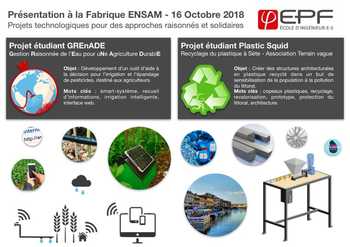 - le projet PlasticSquid qui cherche à étudier avec  l'association Terrain Vague les gisement de plastique sur les plages de Sète pour les recycler en élément de construction architecturaux (ACV, Économie circulaire, Broyeur, Extrudeur)