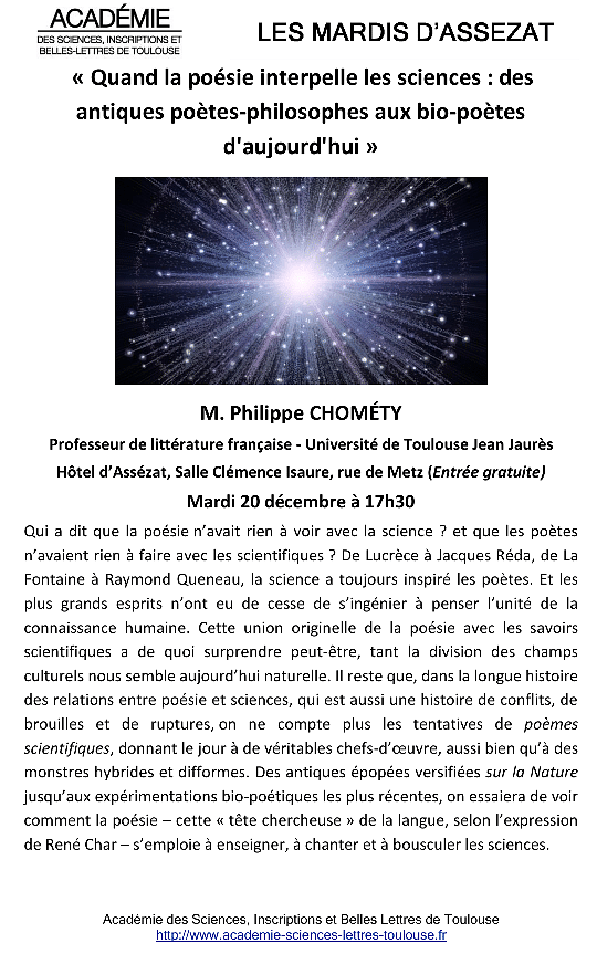 Conférence organisée dans le cadre des "Mardis d'Assézat", organisés par l'Académie des sciences, inscriptions et belles-lettres de Toulouse.