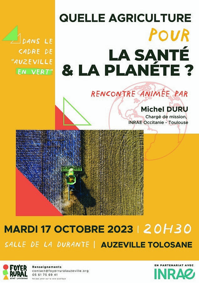 Dans le cadre d’Auzeville en vert, le Foyer rural d’Auzeville-Tolosane et le centre INRAE Occitanie-Toulouse s’associent pour vous proposer une conférence présentée par Michel Duru, chargé de mission INRAE.