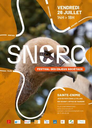 En partenariat avec l’association Kimiyo et le Carrefour des Sciences et des Arts, Cosciences co-organise le festival SNORC (Sciences, Nature, Origine, Ressource, Climat). L’édition Lozérienne présentée par Cosciences vient parler de vautours à Sainte-Enimie.