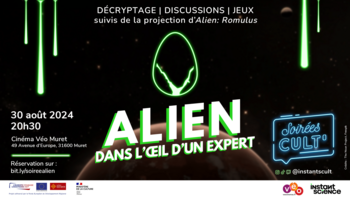 45 ans après le premier film, vous pensez tout savoir de la saga Alien ? Le vendredi 30 août 2024, le cinéma Véo de Muret vous propose de découvrir les Xénomorphes sous un nouveau jour, en compagnie d’un expert en biologie ! Prenez votre place pour la projection du dernier Alien: Romulus à 20h30, et profitez d’une pré-séance de décryptages, discussions et jeux. Garantie sans spoils, mais pas sans rebondissements…