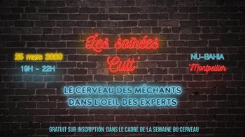 Rendez-vous le mercredi 25 mars 2020, à partir de 19h au Nu-bahia à Montpellier, pour une Soirée Cult’ spéciale cerveau des « méchants », organisée par Science Animation, à l'occasion de la Semaine du Cerveau pour décrypter séries et films qui font la part belle aux « méchants ».