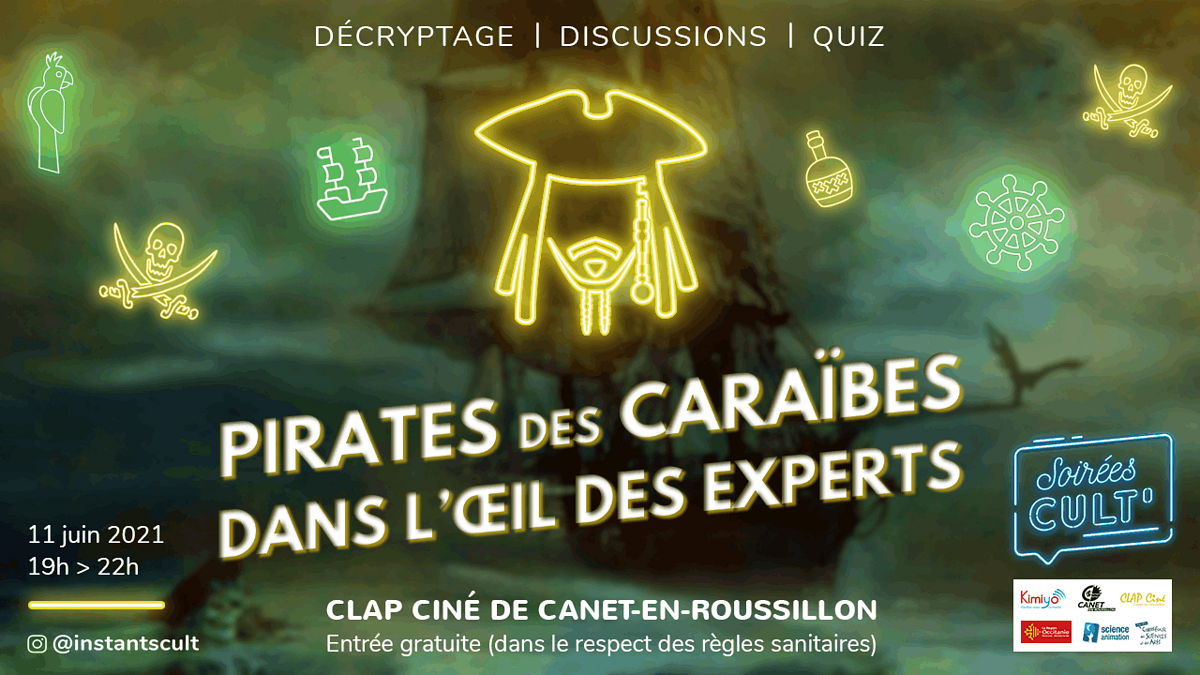 Au programme de la soirée, 3 rencontres avec des spécialistes d'horizons divers qui viendront décrypter les films, les représentations des pirates, des bateaux, des objets antiques; les techniques de combat... Le tout entre-mêlé de jeux et autres animations immersives et participatives avec des cadeaux à gagner pour les plus grands fans !!
