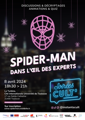 Amateurs de Spider-Man, curieux d’un voyage au-delà des frontières de l’Univers et de la génétique, rendez-vous le lundi 8 avril 2024, à partir de 18h30 à La Turbine (le tiers-lieu étudiant de l’Université de Toulouse), et explorez l’univers de Spider-Man pour une soirée pas comme les autres ! Au programme : passez d’un univers à l’autre avec le multivers, découvrez les secrets génétiques de Spider-Man et tentez de remporter des lots avec notre grand quiz final !