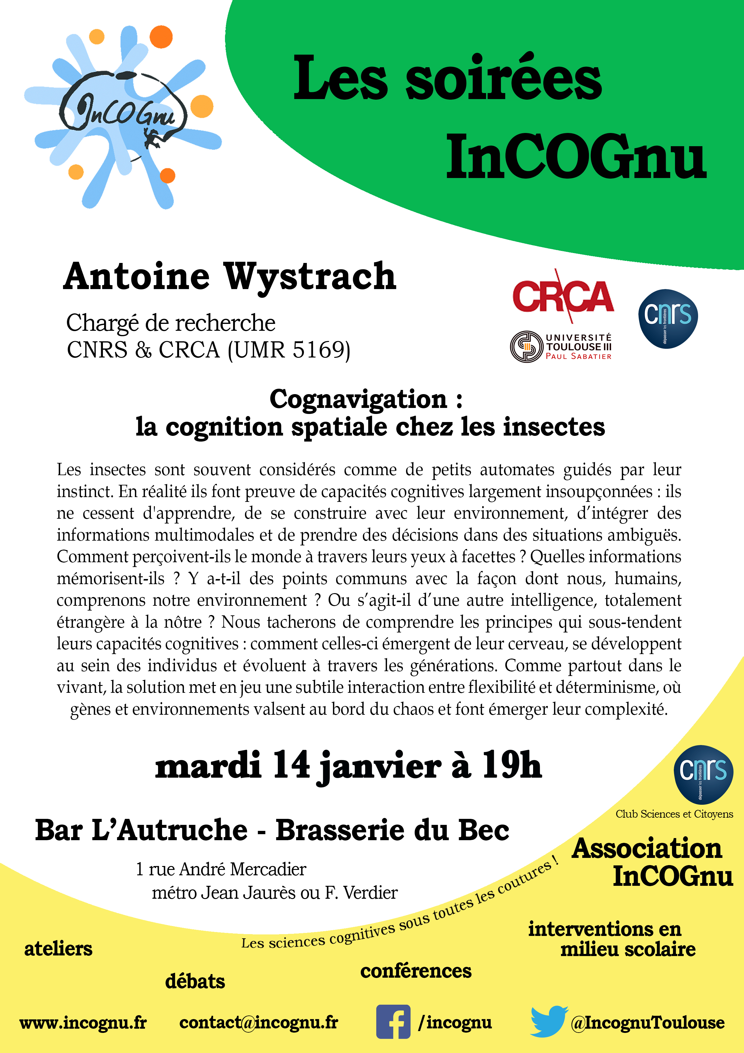 Soirée-débat mensuelle InCOGnu - Toulouse: "Cognavigation : la cognition spatiale chez les insectes"