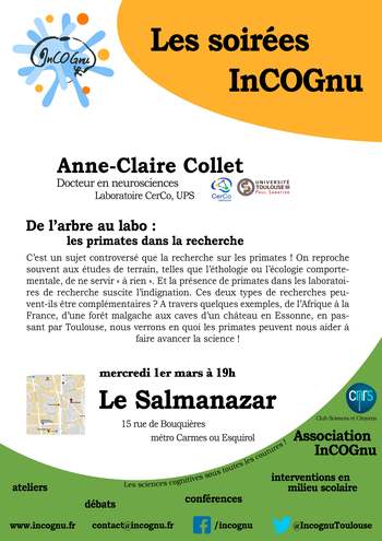 Soirée-Débat mensuelle Incognu - Toulouse: "De l'arbre au labo: Les primates dans la recherche"