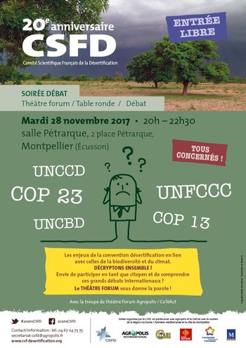 Soirée grand public : séquence Théâtre Forum et table ronde en présence d'acteurs impliqués sur les enjeux des changements climatiques, de la biodiversité et de la désertification via les grandes conventions internationales