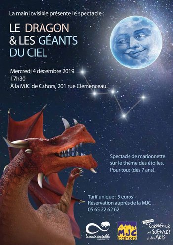SPECTACLE : LE DRAGON ET LES GEANTS DU CIEL, par la compagnie lotoise "La main invisible". En partenariat avec la MJC de Cahors.