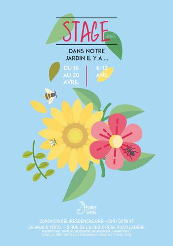 C’est le printemps ! A vos gants, pelles, râteaux et pioches et venez participer à cette semaine de stage placée sous le signe de la nature ! Au sein du jardin de Labège nous sèmerons fleurs, plantes vivaces locales et aromatiques dont les graines pourront être récupérées dans le courant de l’année. Durant la semaine, de nombreux ateliers portant sur la biodiversité, l’environnement et sa protection seront proposés.