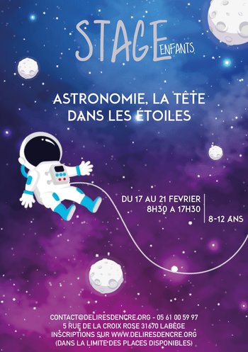 Cette semaine de stage sera l'occasion, au travers de jeux et d'ateliers, de comprendre l'histoire de l'Univers, d'en savoir un peu plus sur les planètes de notre système solaire, d'étudier les propriétés de cette célèbre étoile naine que nous appelons "Soleil" et d'apprendre à observer les étoiles plus lointaines qui illuminent notre ciel nocturne.