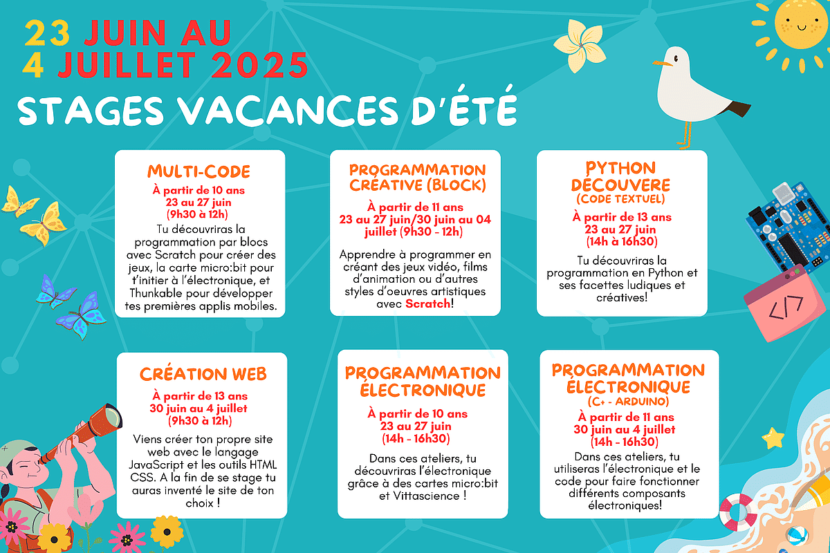 Stages Vacance d'été 2025 👾 Programmation, IA, électronique