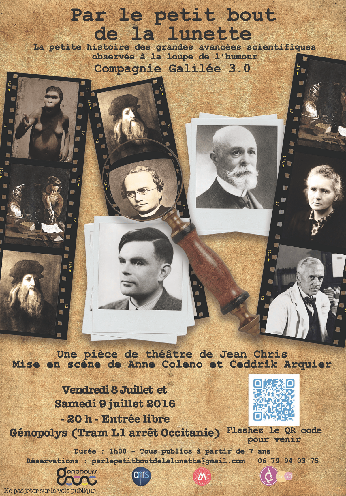 En 2015-2016, la troupe issue de l'aventure théâtrale Galilée 2.0 se monte en association « Galilée 3.0 ». Le projet porte sur la création d’une pièce abordant les grandes avancées scientifiques observées à la loupe de l'humour. Jean Chris, l’acteur principal de Galilée 2.0 écrit la pièce qui sera ensuite mise en scène par Céddrik Arquier et Anne Coléno-Costes.