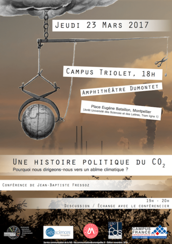"Si tout le monde a en tête la courbe croissante des émissions de CO2 depuis deux siècles, on en a curieusement pas d’histoire. Quels sont les grands processus historiques qu’il faut prioritairement mettre en relation avec cette courbe ? Quels sont les institutions, les pouvoirs, les imaginaires et les intérêts qui nous ont véritablement placés sur le chemin de l’abîme climatique? Cette conférence visera à redonner au CO2 une histoire et donc une politique."