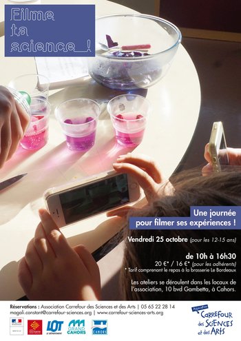 Pendant la 1ère semaine des vacances de la Toussaint 2019, nous proposons aux jeunes de 12 à 15 ans une journée de stage scientifique intitulée : Filme ta science ! Une journée entière pour faire des expériences et réaliser sa propre vidéo.