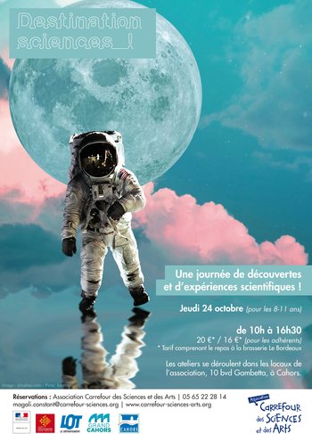 Carte d’embarquement en poche, c’est parti pour un voyage au coeur des sciences. La science est partout, découvre là à travers des expériences, jeux, manipulations et constructions. Deux destinations surprises (une le matin et une l’après-midi) te permettront de découvrir de nombreux et surprenants phénomènes scientifiques. Prépare tes méninges et ton sens de la déduction pour réussir en équipes les jeux, défis et expériences inspirés du monde entier !