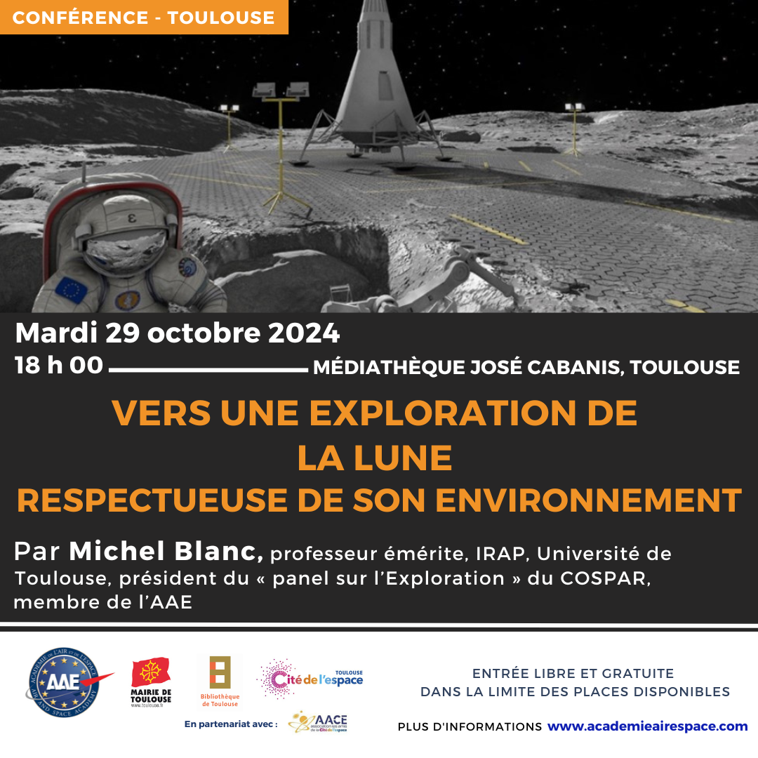 Conférence organisée par l’Académie de l'air et de l'espace en partenariat avec SEMECCEL - Cité de l’espace / L’Envol des Pionniers, l'Association des Amis de la Cité de l'Espace, la Toulouse – Mairie et Métropole et la bibliothèque de Toulouse.