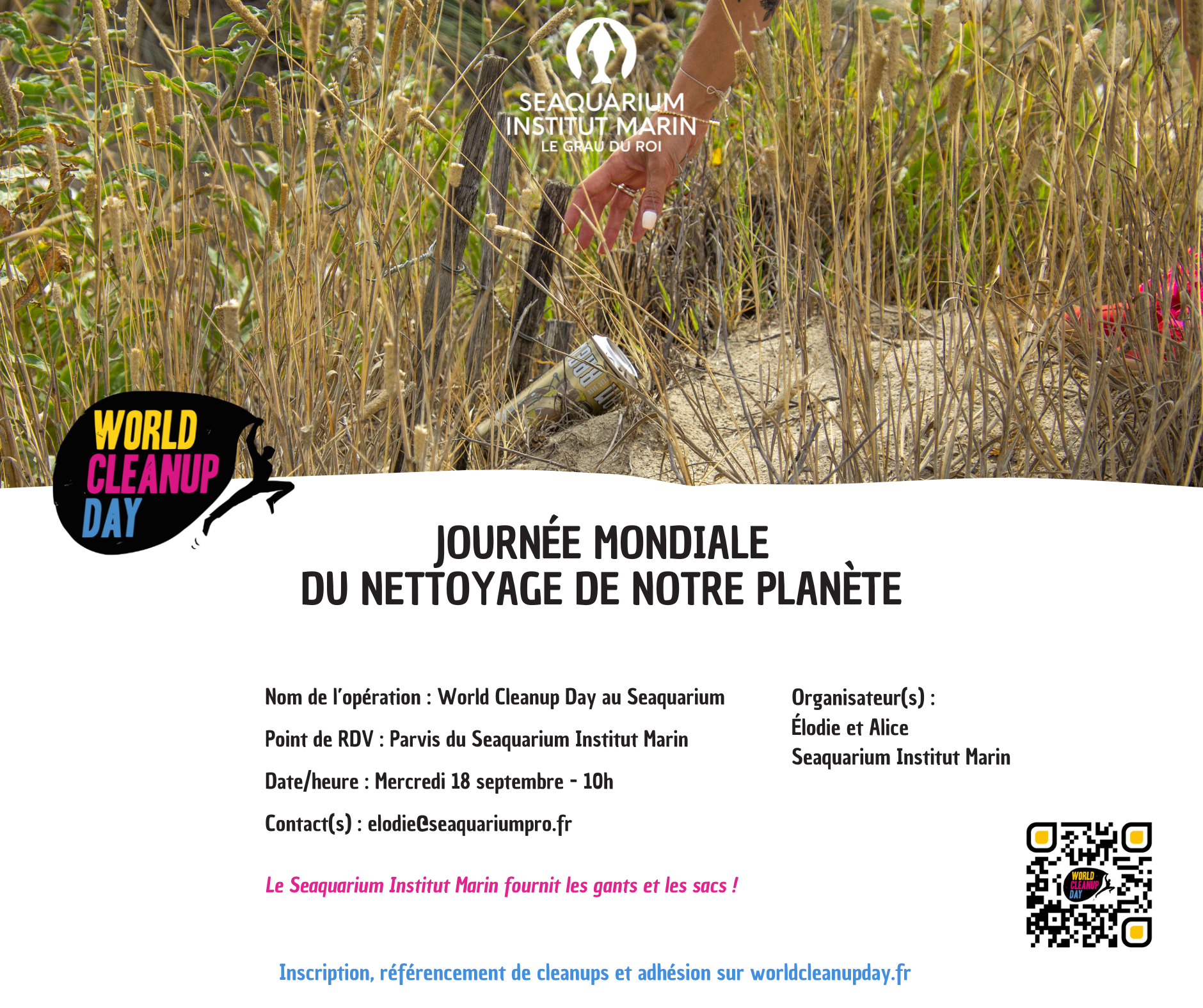 Un cleanup (nettoyage de déchets) public aura lieu le 18 septembre au matin, à 10h sur le Parvis du Seaquarium Institut Marin. l'évènement est référencé sur le site de l'association, c'est un cleanup public : www.worldcleanupday.fr/#lacarte