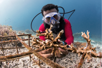 Aux Raja Ampat, en Indonésie, certains récifs ont été victimes de fortes perturbations telles que des pêches destructrices à la dynamite et au cyanure ; et sont désormais laissés à l’état de débris. Il faut donc les restaurer dans une région du monde où les coraux semblent les plus résilients et les plus résistants au changement climatique.