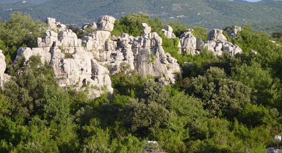 L' étonnant chaos calcaire se dévoile lentement au fil d'un lacis de petits sentiers protégés par une nature luxuriante. Des rochers fantastiques aux formes improbables de dressent au milieu d'une végétation dense, de type garrigue, constituée principalement de chênes verts et de lauriers sauce.