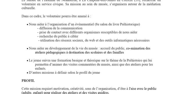 Le musée de l'Homme de Neandertal recherche un Service Civique en médiation culturelle !