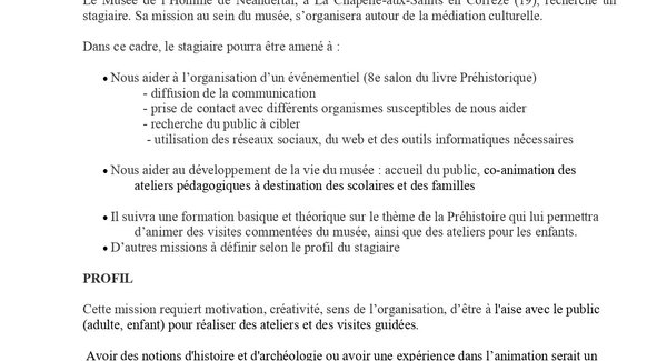 Le musée de l'Homme de Neandertal recherche un stagiaire en médiation culturelle !
