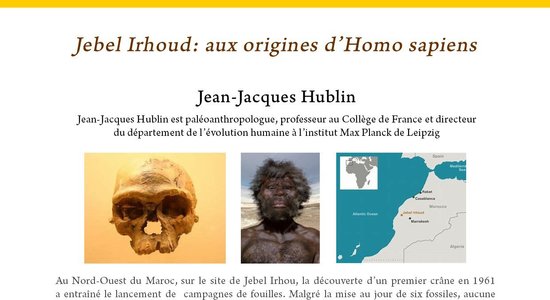 Conférence scientifique - " Jebel irhoud : aux origines d'Homo sapiens" par jean-Jacques Hublin
