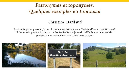 Café de la Préhistoire "Patronymes et toponymes. Quelques exemples en Limousin" par Christine Dardaud