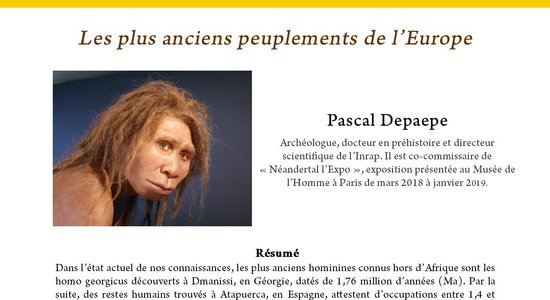 Conférence scientifique -"Les plus anciens peuplements de l'Europe" par Pascal Depaepe