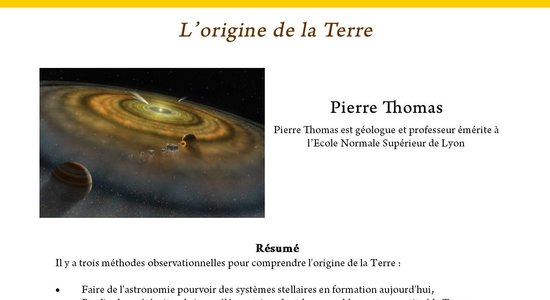 Conférence scientifique -" L'origine de la Terre" par Pierre Thomas