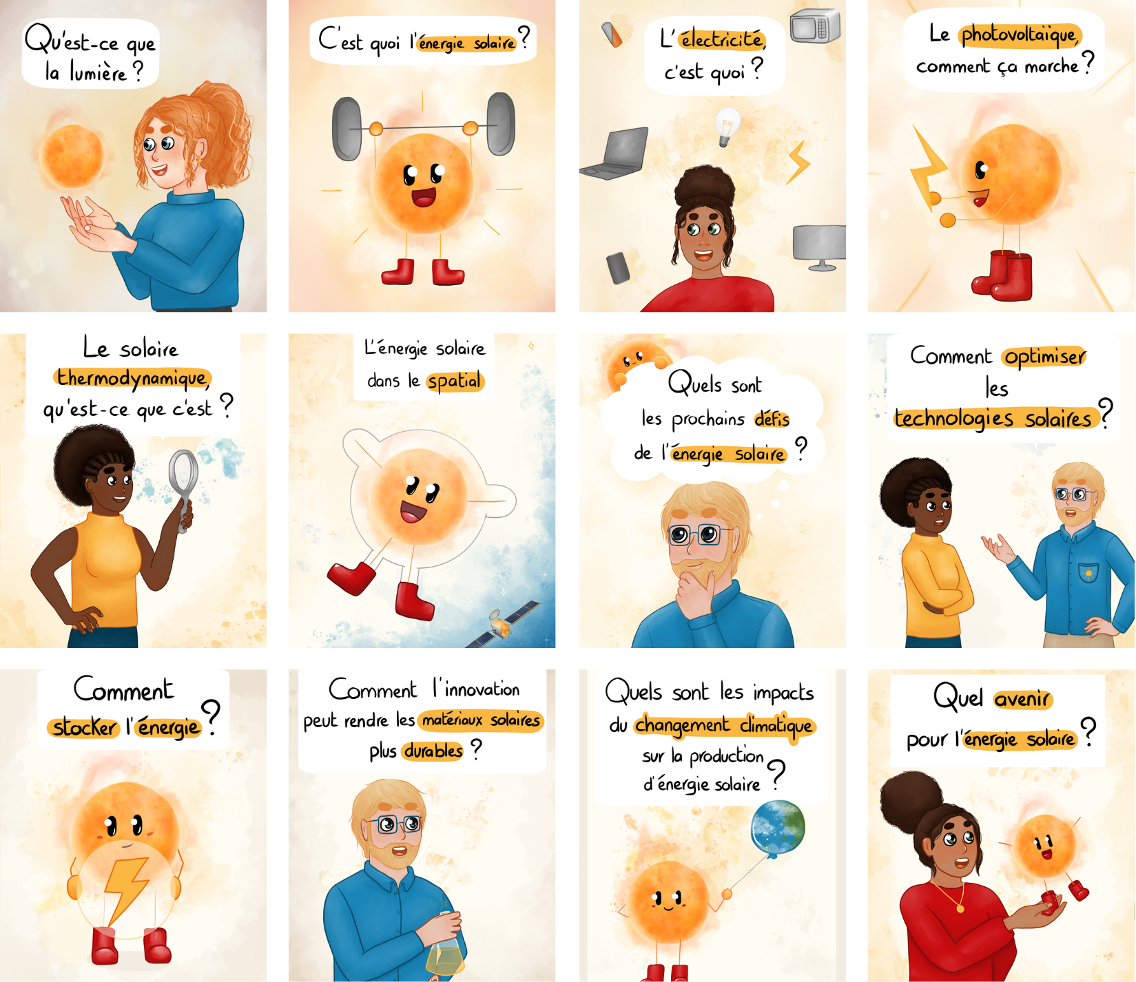 Les illustrations sont signées Eloïse B., artiste passionnée de sciences, qui met son univers graphique au service de la médiation scientifique. Tous les contenus sont validés par un comité scientifique interne au projet PV-STAR, garantissant la rigueur des informations partagées.