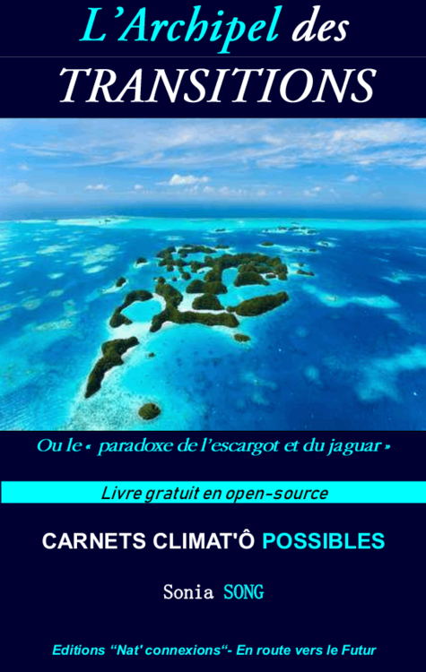 Alors comment allez-vous entrer vous, dans l'âge de la Femme et de l'Homme résilient (e)s ? Par la petite porte, la grande ? Ou bien par la fenêtre, par une lucarne sur le toit, éclairé (e) par des colonies de lucioles ? Je vois d'ici ceux qui vont préférer rester côté jardin” et y relire Voltaire et son inaltérable “Candide”. L'Archipel des transitions s'il n'a certainement pas la prétention d'être un nouveau conte philosophique à la "Candide", est un voyage initiatique en soi et à l'intérieur du monde, il a l'ambition affichée, de rendre accessible la complexité, il puise ses sources d'inspiration, dans l'ensemble des faits précurseurs présents dans la société de 2018 (innovations, organisations, concepts, travaux de recherches, projets-pilotes, imaginaire nouveau… ), pour nous conduire vers ce que pourrait devenir la Terre adaptée. Cela peut se produire si, et seulement si, la coresponsabilité parvient à germer dans la nouvelle conscience planétaire, comme une étrange fleur sauvage, non encore identifiée par les botanistes. Aura-t-elle la couleur d'un coquelicot laïque ou celle d'une fleur mystique de lotus ? Quoiqu'il en soit, il nous faut beaucoup de jardiniers…encore plus de réparateurs de tout, et encore encore plus, de libres penseurs positifs du monde, acteurs de terrain, en lien avec les décideurs locaux, les Etats. Etats qui auront édicté, par un jeu de co-écriture avec une assemblée citoyenne, des droits élargis aux enfants et au monde du Vivant dans son ensemble. Cette fiction-réalité nous conduit à imaginer ce qu’il arriverait si les politiques taxant le carbone se généralisaient rapidement. Le coût global devra aussi faire partie des stratégies, afin d'intégrer le coût de l'impact social et environnemental de nos projets…Puis l'économie symbiotique, à impact positif, devra très vite entrer dans nos logiciels de développement, pour permettre à nos écosystèmes de se régénérer, et de produire des nouveaux services écologiques permettant la résilience de nos sociétés. Les personnes qui s'engageront dans ces nouveaux modes de vie, seront directement gratifiées, et récompensées par les nouveaux modèles économiques. Ces carnets sont un peu un tremplin pour y arriver… Voilà, c'est parti 1 2 3 Soleil !