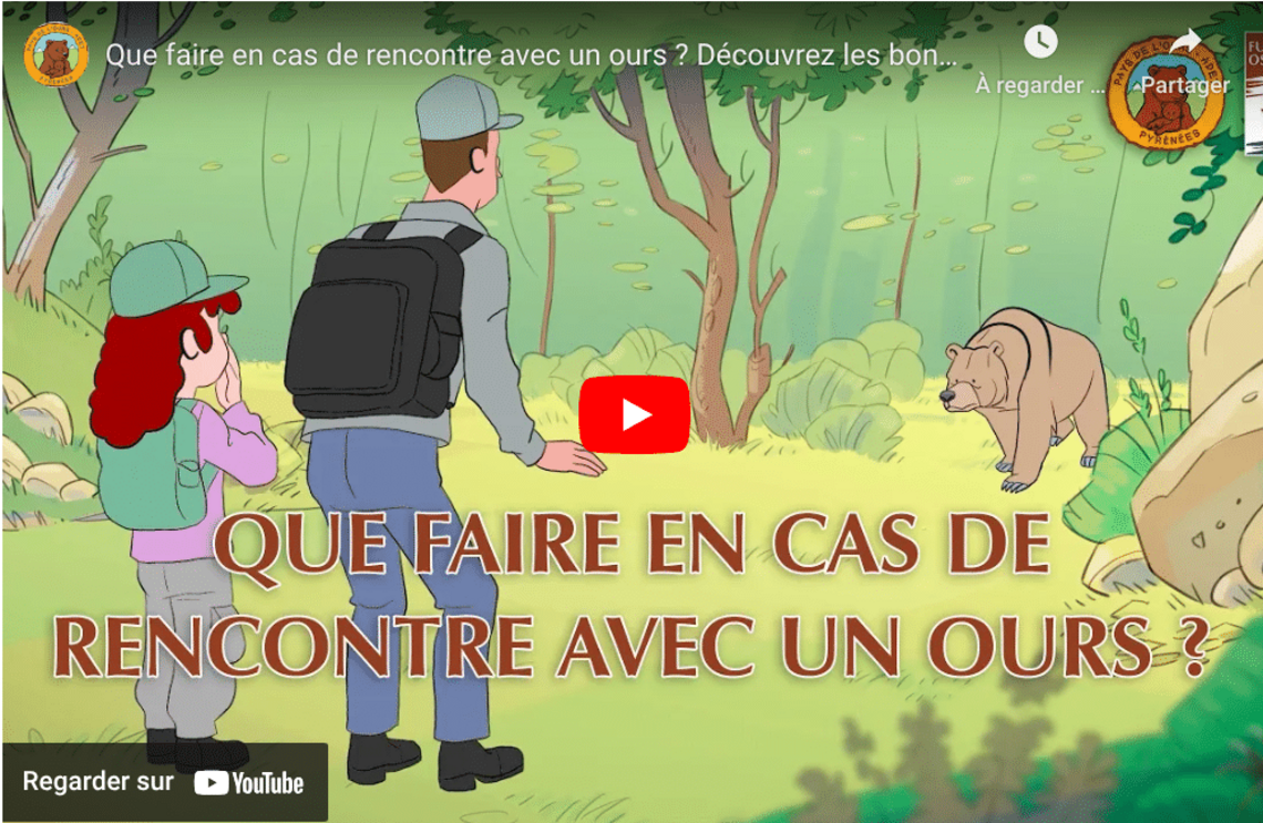 Ce dessin animé pédagogique de 5 minutes, déjà disponible en espagnol, en anglais et en italien, vise à informer le public sur les comportements appropriés en cas d’observation d’un ours.