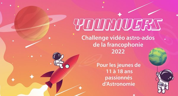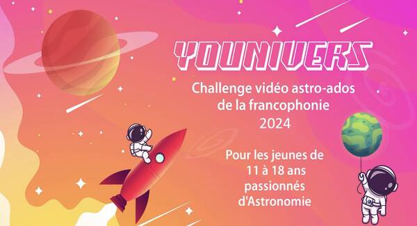La Société astronomique de France lance le 3e challenge vidéo astro-ados Younivers de la francophonie destinée aux jeunes de 11 à 18 ans. Le coup...