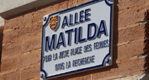 La nouvelle plaque de l’allée Matilda en référence à l’Effet Matilda, inaugurée ce 27 septembre 2019 à Toulouse - © - Photo DDM, Fred Charmeux Le...